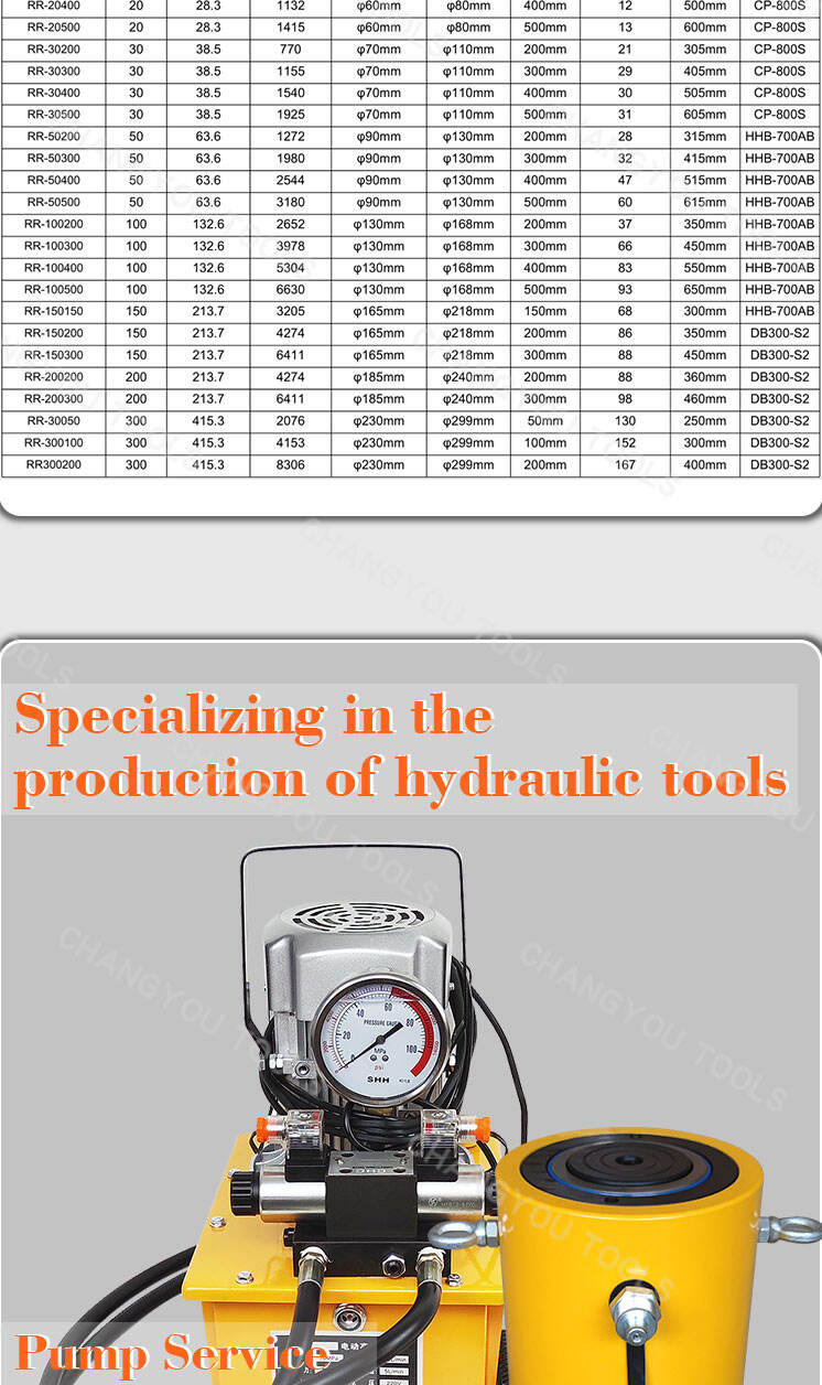 RR-100200 Dobbeltvirkende hydraulisk stempelcylinder med tovejsarbejde