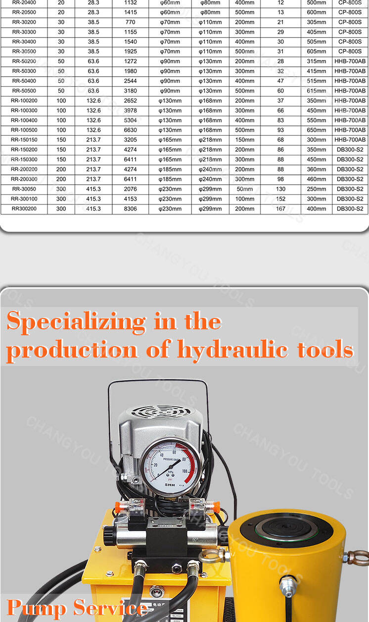RR-150300 dobbelvirkende tovejs cylinder hydraulisk tomast