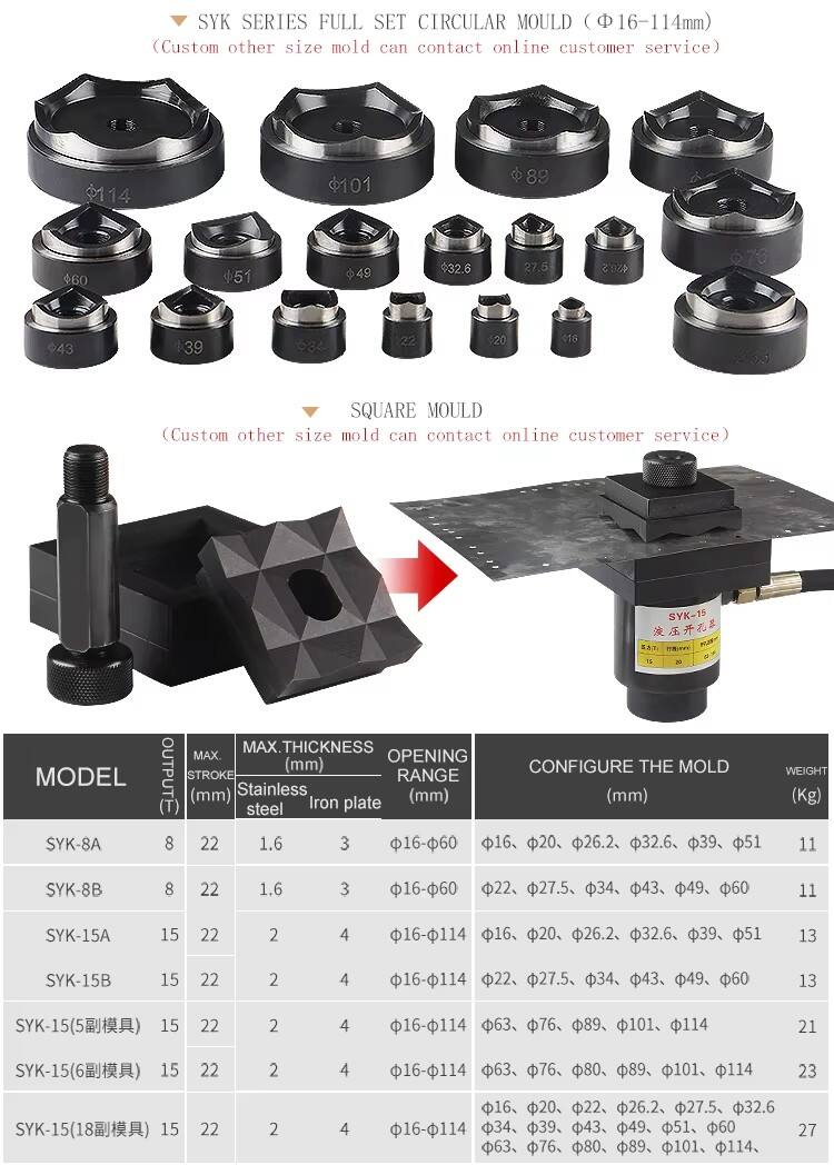 SYK--8A Hydraulisk pærepunsmaskine - Sæt med hulgravemaskine - 16 mm - 51 mm