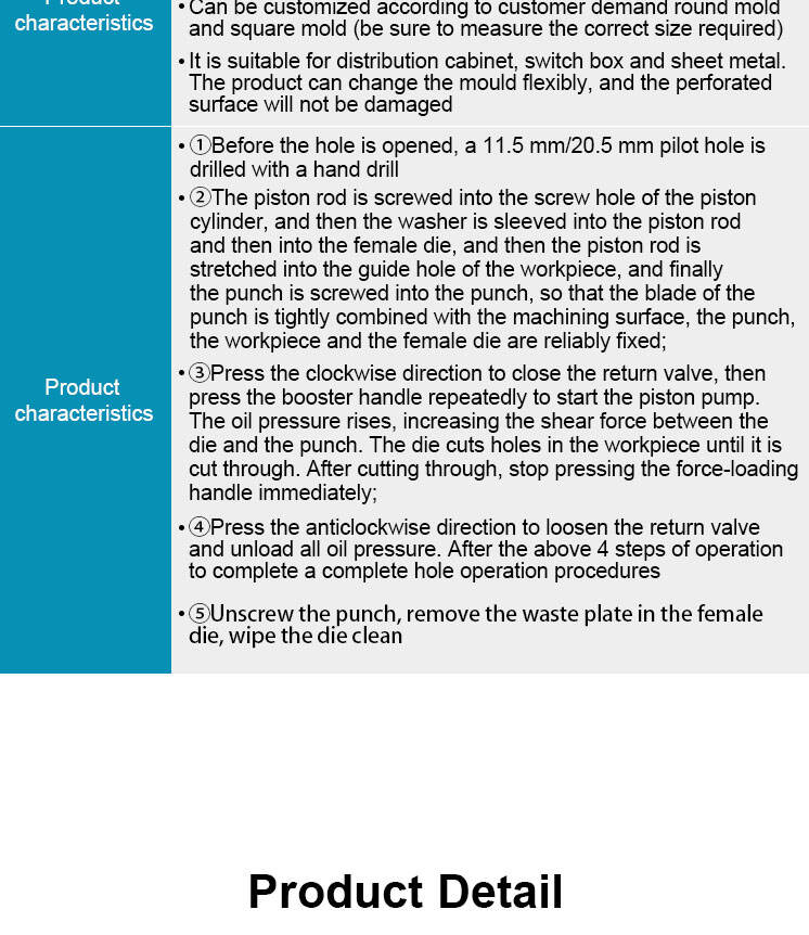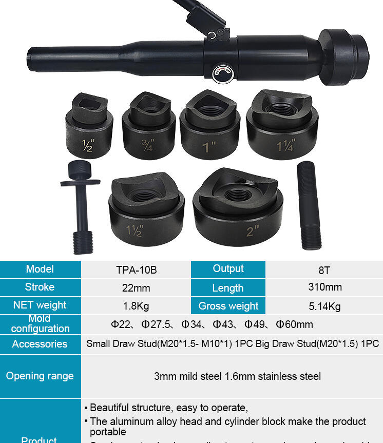 - Hydraulisk perforator Efter tusinder af hulprøver vil hullet ikke ødelægge produktet