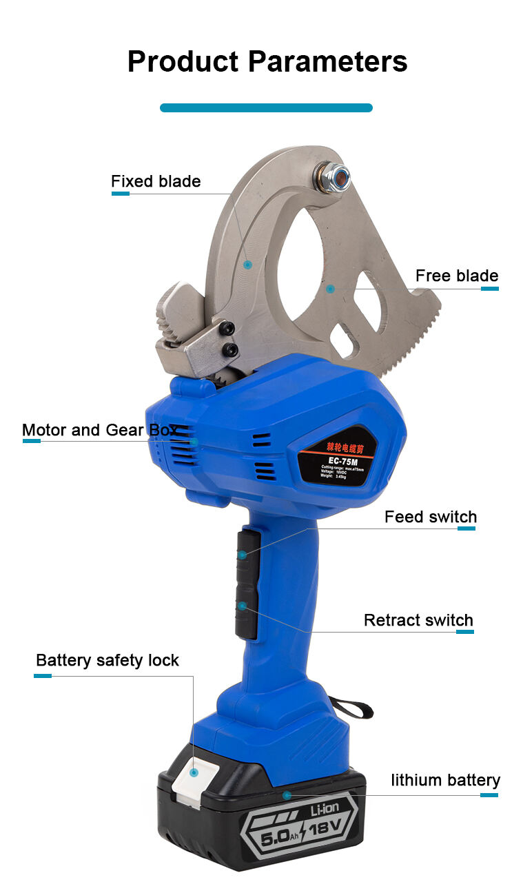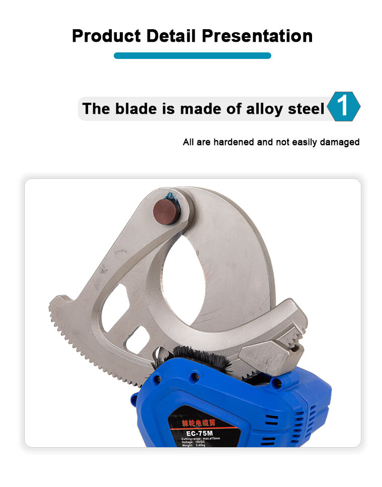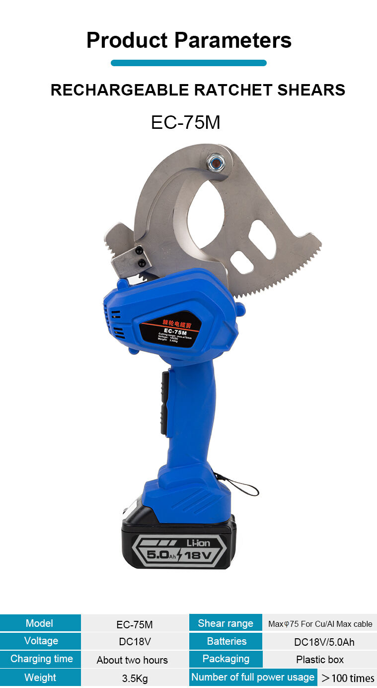 دستگاه برش کابل الکتریکی با باتری EC-75M برای کابلهای مسی و آلومینیومی تا 75 میلیمتری با قفل دندهدار