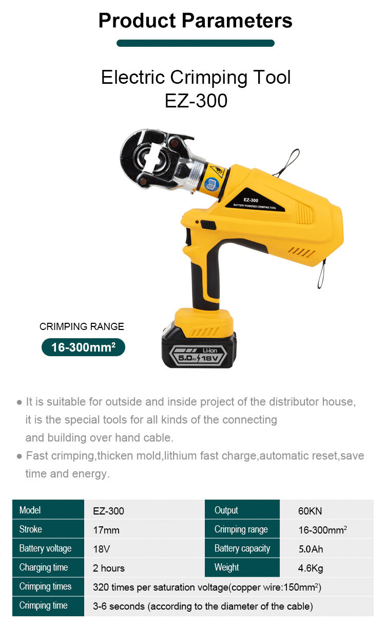 ابزار هیدرولیک کشیدن کابل EZ-300 با نمایشگر OLED 10-300 میلیمتر مربع ابزار قدرت الکتریکی