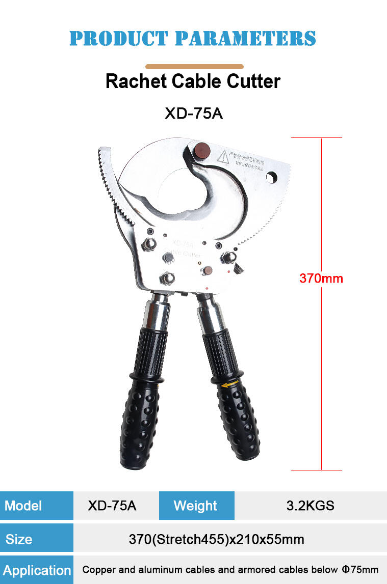 XD-75A Hydraulinen kaapelinkatkaisija Mekaaninen kaapelin saksat Ratsastusrakenteella teräksestä valmistettu leikkuukäyttöön