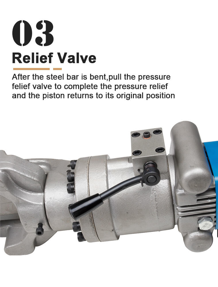 - Katup Pengaman Setelah besi beton dibengkokkan, tarik katup pengaman tekanan untuk menyelesaikan pelepasan tekanan dan piston kembali ke posisi semula