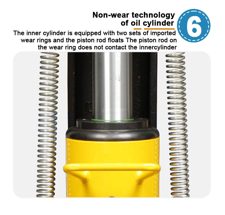 - 실린더 비마모 기술, 내부 실린더에는 수입된 마모 링 2세트가 장착되어 있으며 피스톤 로드는 플로팅 방식으로 설계되어 마모 링의 피스톤 로드가 실린더 내벽에 직접 닿지 않음