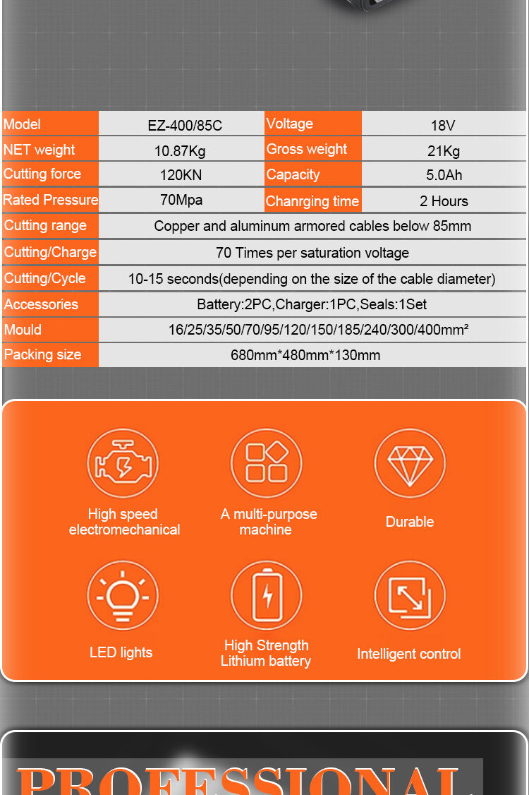 EZ-400/85C Qatgħa Crimping 2 fil-1 Batterija Elettrika Powred Istrument Idravlik