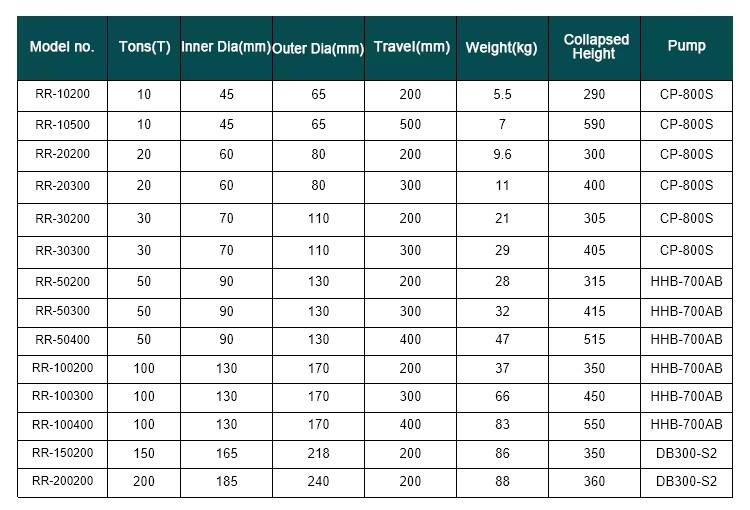 RR-10200 10 Ton Dubbelwerkende lange slag hydraulische cilinderkrik