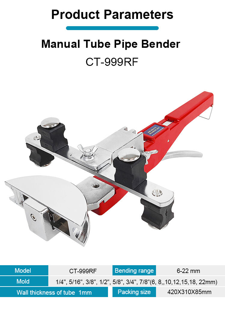 CT-999RF 6-22mm Hand Bender Tool Set HVAC Refrigeration Copper Pipe Bending Tools 90 Degree Tube Bender Kit