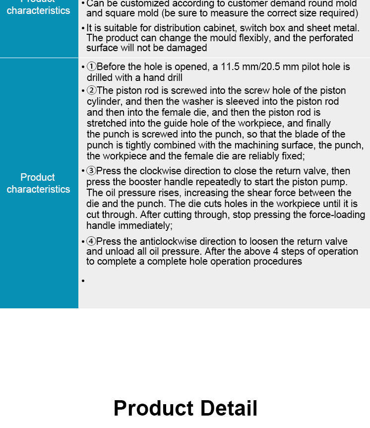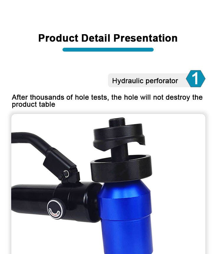 - Hydraulic perforator Pagkatapos ng libu-libong pagsubok sa butas, ang butas ay hindi magsisira sa produkto