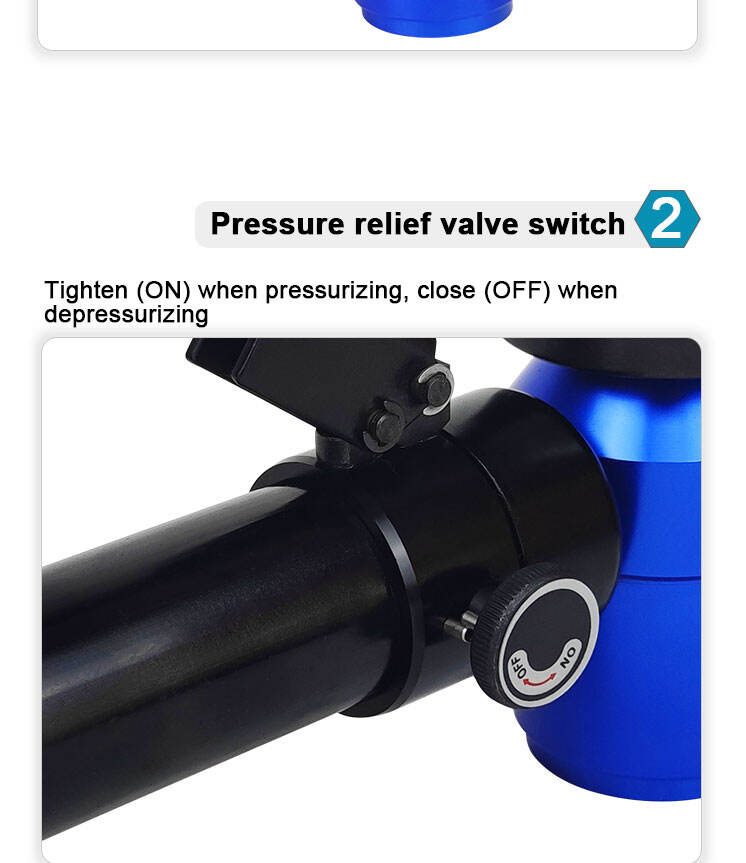 - Pressure relief valve switch Higpitan (ON) kapag pinipilit, isara (OFF) kapag binabawasan ang presyon